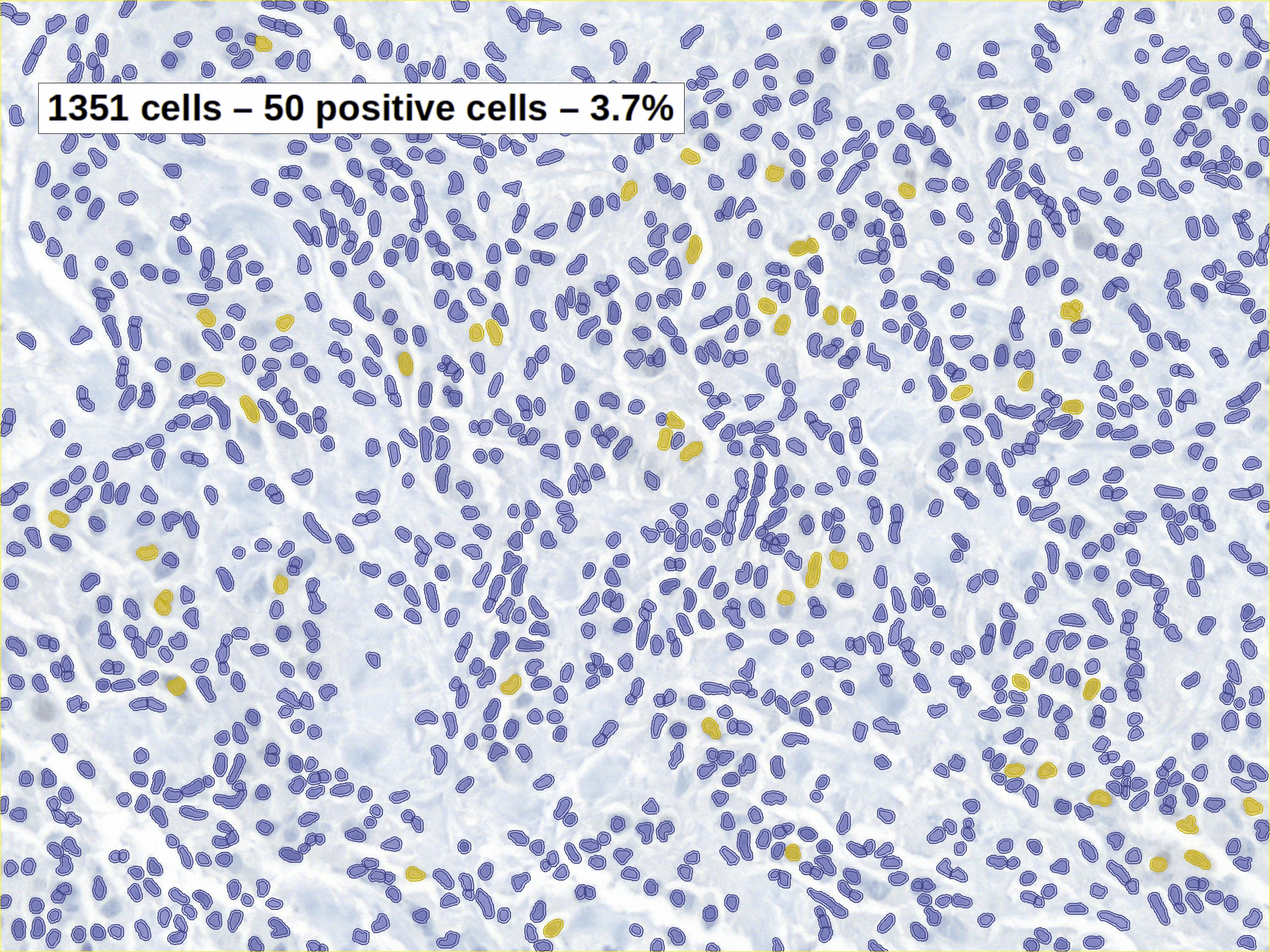 TPS is the proportion or percentage of positive tumoral cells. The staining must be membranous. It can be partial or complete and can be of weak, moderate or strong intensity. Mainly used for NSCLC, immune cells are not taken in account and sometimes make the assessment difficult. Indeed macrophages can mimic low-grade tumoural cells. TPS is a percentage.